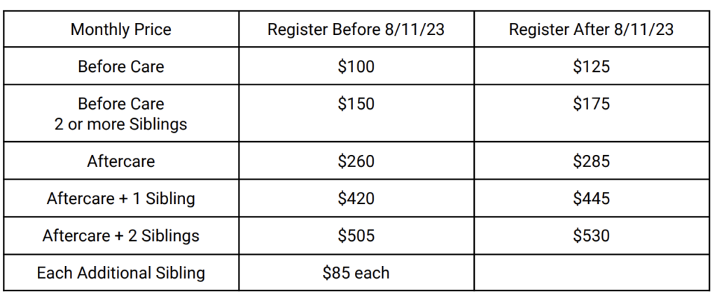 Registration is available NOW for the after care program for school year 2025-2026.