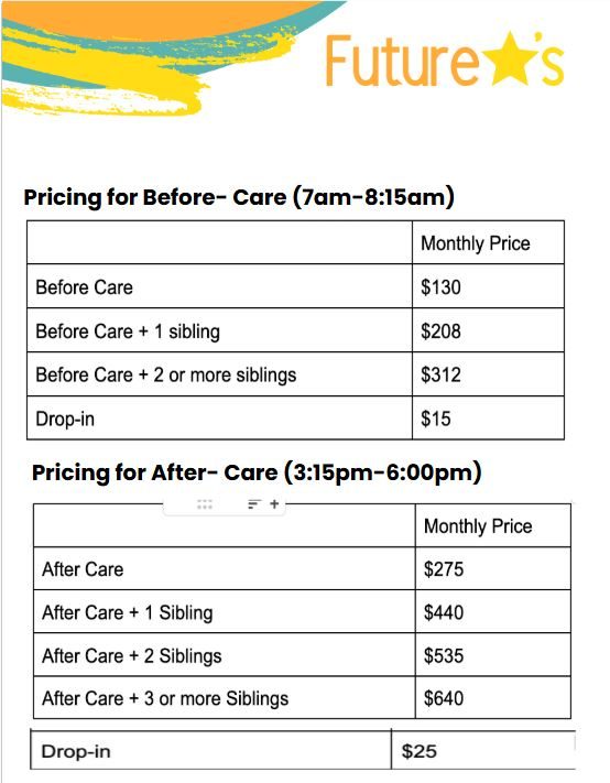 This page provides information regarding Before & After Care. Information regarding Enrichments is available here.